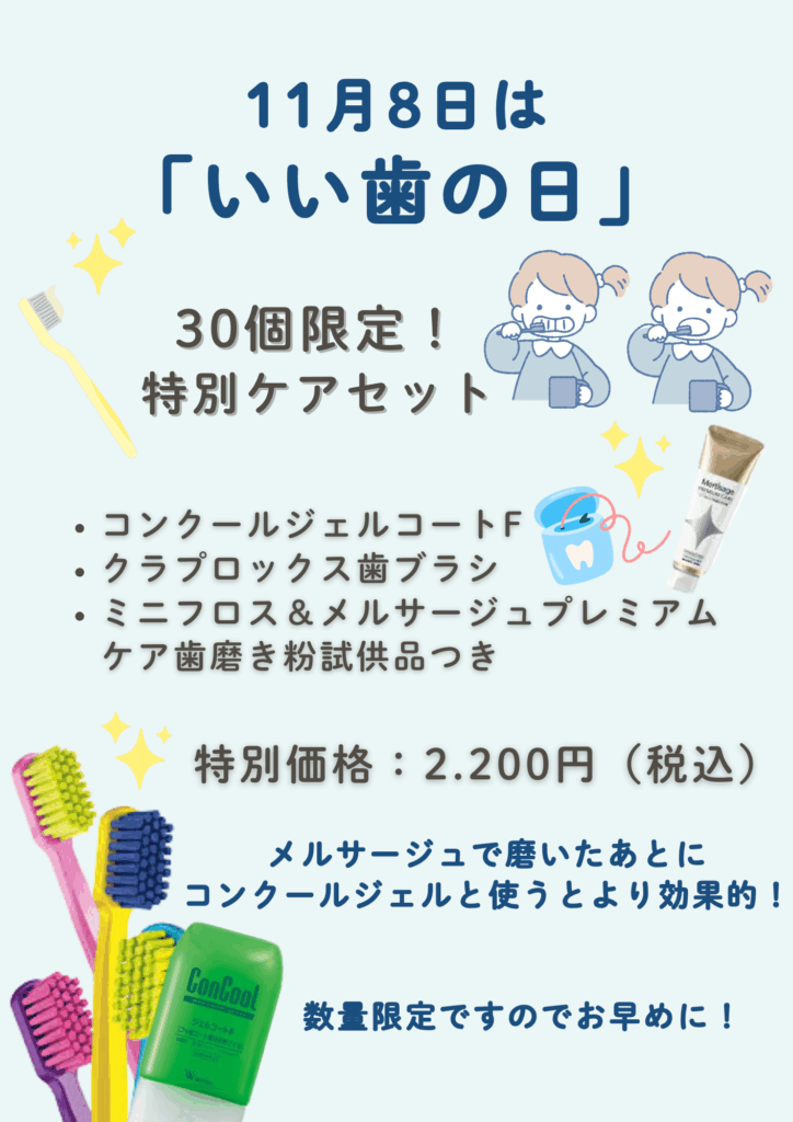 当院では「いい歯の日」にあわせて、30個限定の特別セットをご用意しました🎁