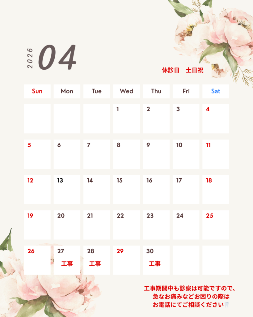 工事期間中も診察は可能ですので、急なお痛みなどお困りの際はお電話にてご相談ください🦷